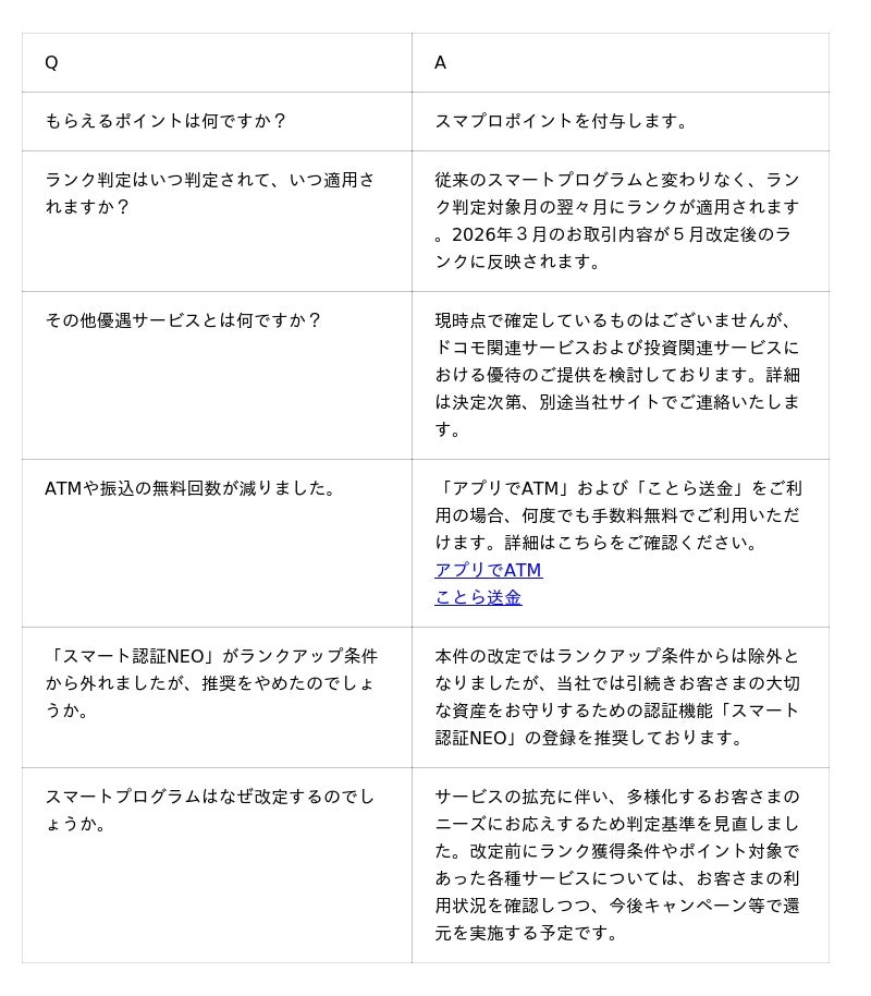 住信SBIネット銀行株式会社(本社:東京都港区、代表取締役社長(CEO):円山 法昭、以下「住信SBIネット銀行」)は、2026年5月から、「スマートプログラム」のランク判定条件・特典内容を改定いたします。