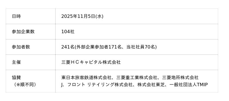本イベントもその一環として開催し、新事業開発力の強化に繋げるものです。当社は、今後もイノベーションを生み出す場を提供するとともに、さまざまなパートナーとの協業により新事業開発に向けた取り組みを推進することで、ビジネスモデルの進化・積層化を図っていきます。