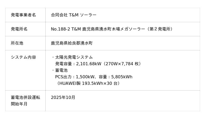 TESSグループ、「No.188-2 T&M 鹿児島県湧水町木場メガソーラー」(第2発電所)にて蓄電池設置工事に関する竣工式を実施