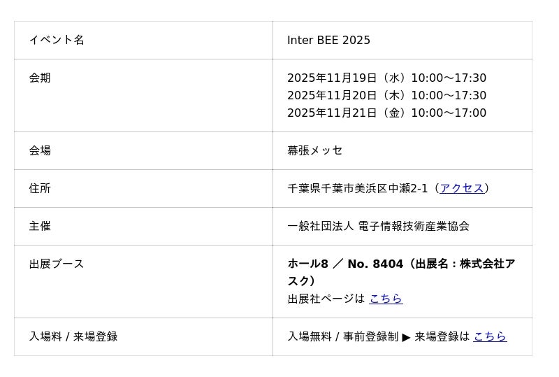 株式会社アスク 営業3部 (アスク・エムイー) は、2025年11月19日 (水) ~11月21日 (金) の3日間開催される「