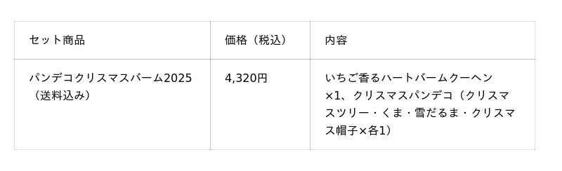 株式会社八天堂(本社:広島県三原市、代表取締役社長:森光孝雅)は、2025年11月10日(月)より「パンデコクリスマスバーム2025」を八天堂オンラインショップで予約受付を開始しました。