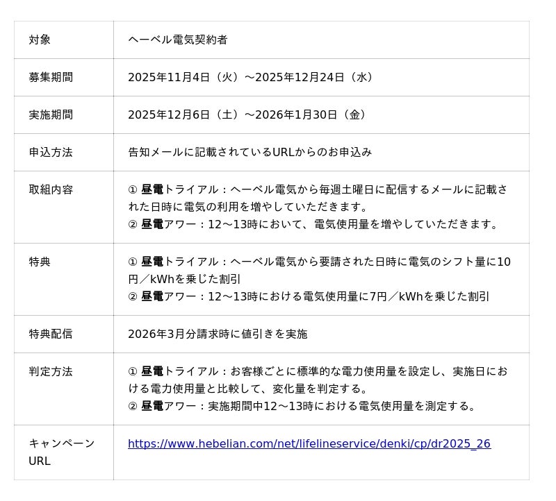 「へーベル電気 "昼電"キャンペーン」12月より開始 東京都「家庭の環境アクション推進事業」(注)採択事業の取り組み