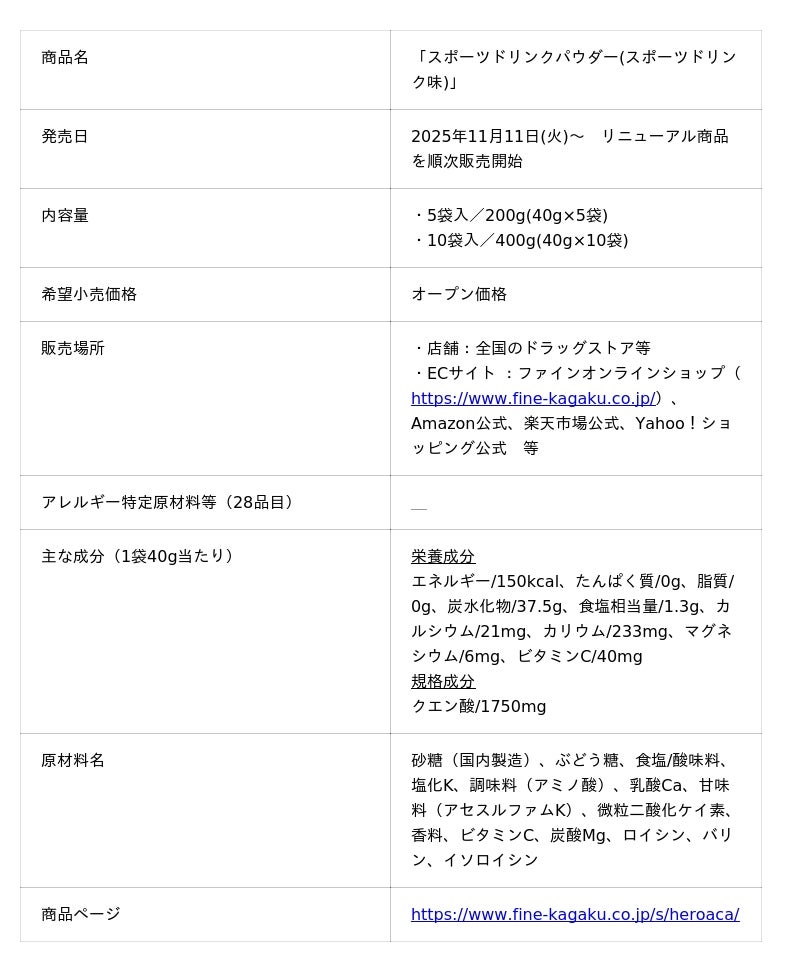 健康食品および医薬品などを製造・販売する株式会社ファイン(本社:大阪市淀川区、代表取締役:佐々木 信綱)は、人気の「スポーツドリンクパウダー」を「