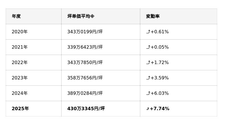 【2025年10月版】値上がり続ける不動産!東京都23区における6年間の坪単価推移をまとめてみた)