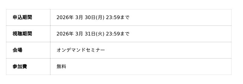 セミナーを2026年3月31日(火)までオンデマンド配信します。お申し込みは3月30日(月)まで受け付けています。