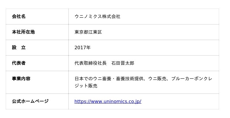 - ウニノミクス株式会社の概要