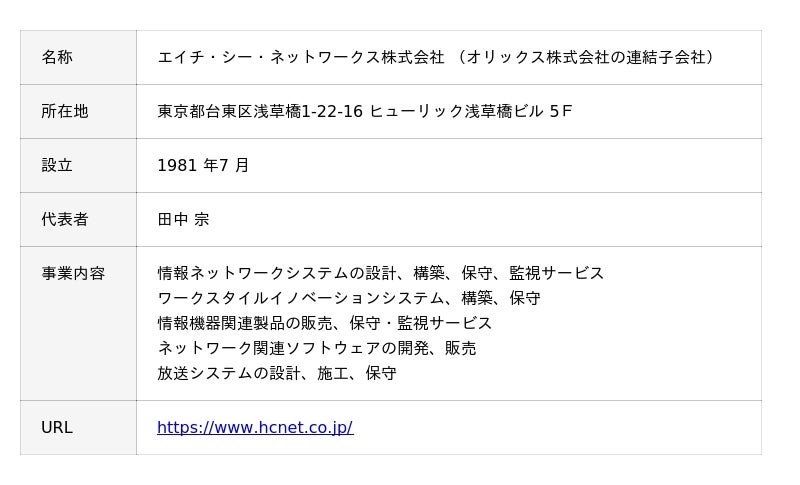 エイチ・シー・ネットワークス株式会社(本社:東京都台東区/代表取締役社長:田中 宗/以下、