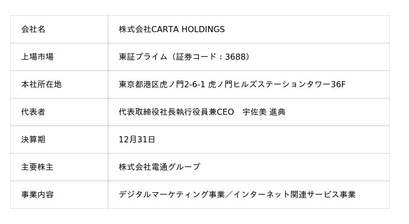 株式会社CARTA HOLDINGS(東京都港区、代表取締役社長執行役員兼CEO:宇佐美 進典、東証プライム市場:証券コード3688、以下「CARTA HD」)は、株式会社COTEN(代表取締役:深井 龍之介、以下 COTEN)を応援する「法人COTEN CREW」に参加しましたことをお知らせいたします。