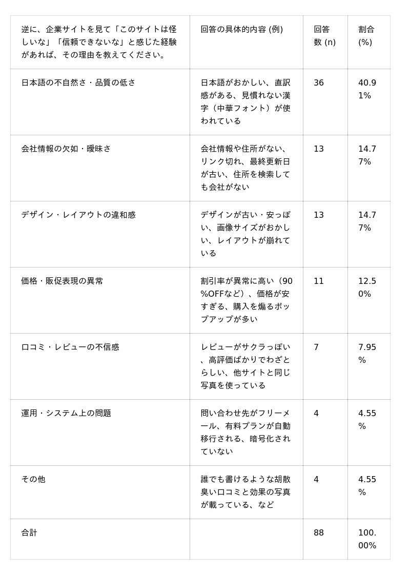 サイトの信頼性を損なう最大の要因は「日本語の品質」でした。