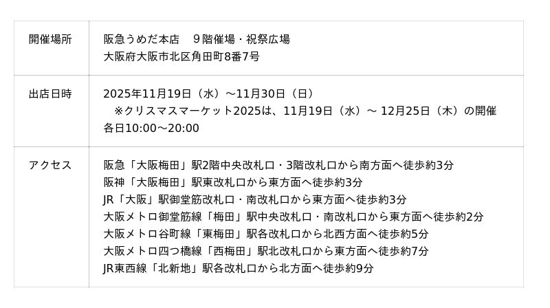 2025年11月19日から30日まで、阪急うめだ本店9Fに期間限定OPEN