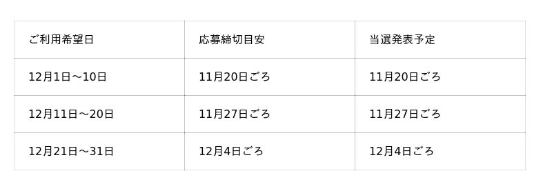 ※車両に空きがある場合は、直前の応募でも抽選対象になる場合があります。