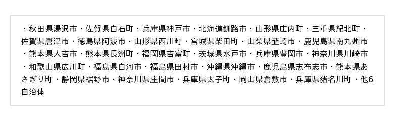 神奈川県川崎市、兵庫県神戸市などの政令指定都市をはじめ、大小問わず多くの自治体で導入されています。