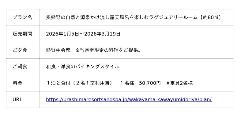 https://urashimaresortsandspa.jp/wakayama-kawayumidoriya/プレスリリース提供:PR TIMES