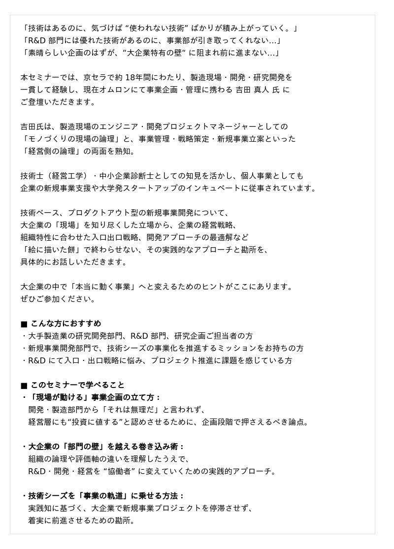 タイトル:京セラ出身が語る~製造業のプロダクトアウトの実践知~