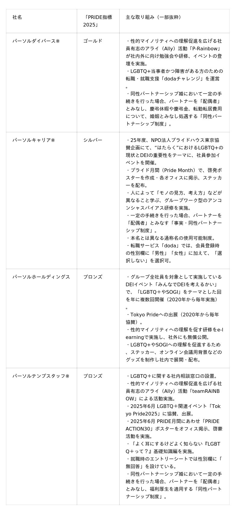 パーソルグループ4社、LGBTQ+に関する取り組み指標「PRIDE指標2025」においてゴールド・シルバー・ブロンズを受賞