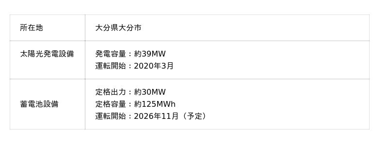 大分県大分市における太陽光発電所への国内最大規模の再エネ併設型蓄電池の設置について