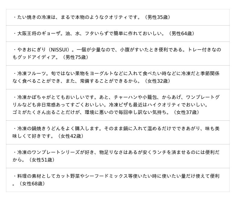 冷凍食品の利用状況や意向などについて聞いています。調査結果をお知らせいたします。