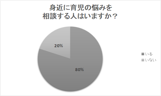 そこで、「身近に育児の悩みを相談する人はいますか?」というアンケートを行いました。すると、80%もの人が「いる」と答えたのです。