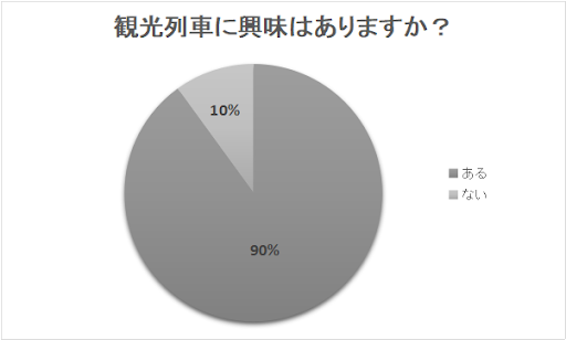 綺和美では、「観光列車に興味はありますか?」というアンケートを行いました。すると、90%もの人が「ある」と回答したのです。