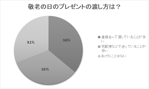 プレゼントを渡すと回答した人に、「敬老の日のプレゼントの渡し方は?」というアンケートも行いました。結果は以下の図のとおりです。