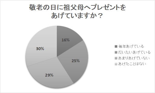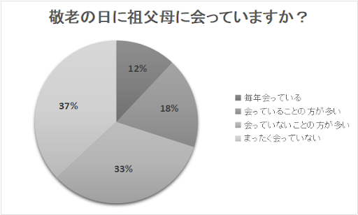 「会っていないことの方が多い」も33%という数字でしたので、敬老の日にはあまり祖父母には会っていないということがこのアンケート結果からわかったのです。