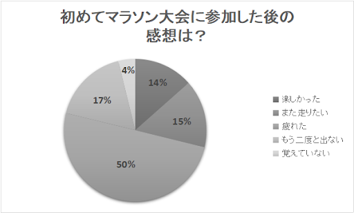 そこで、マラソン大会に初めて参加した後の感想を伺ってみました。結果は下記の図のとおりです。