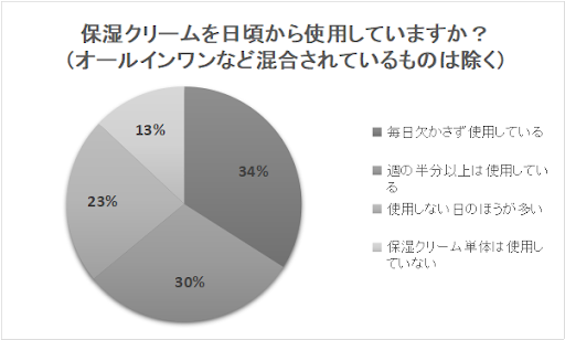 そして、「週の半分以上は使用している」と答えた人が30%だったのです。保湿クリームを使用している人は多いですが、毎日欠かさず使用している人は34%とそこまで多くない結果でした。