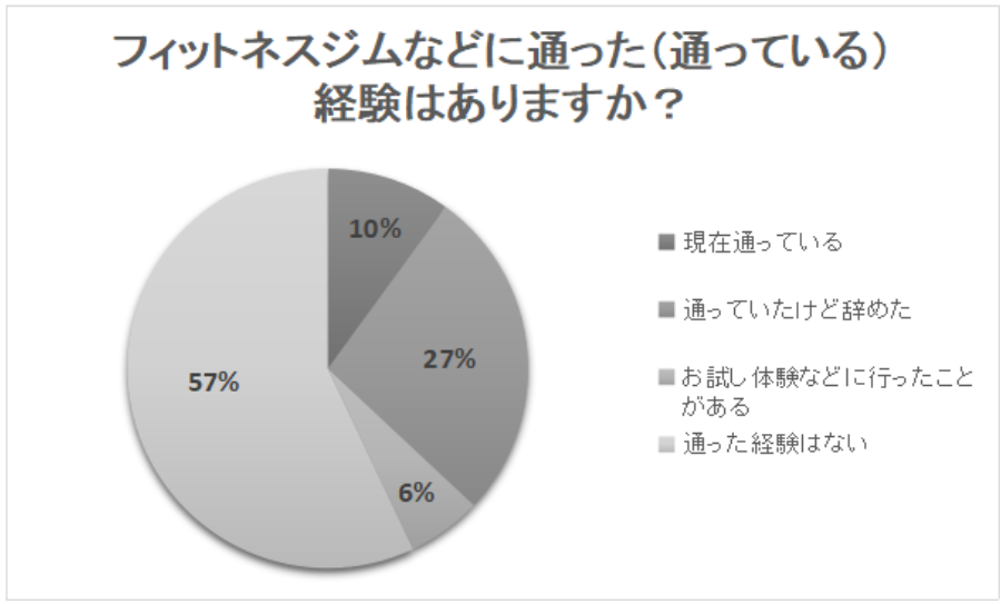 お試し体験のみに行ったことがある人も6%いました。フィットネスは、日頃から体を動かしている人からすると、少し遠い存在なのかもしれません。