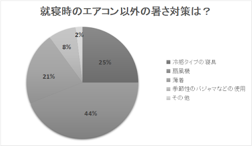 最後に、就寝時のエアコン以外の暑さ対策も聞いてみました。熱帯夜となる夜も多くなっています。
