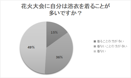 花火大会と言えば、浴衣姿を着るとより一層雰囲気も華やかになります。そこで、「花火大会に自分は浴衣を着ることが多いですか?」というアンケートも行いました。