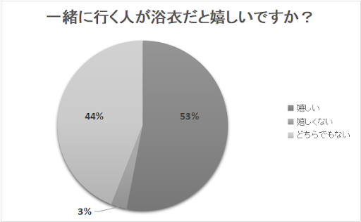 しかし、自分は着なくても一緒に行く人が浴衣だとまた雰囲気も違ってくるのでは?と思い、「一緒に行く人が浴衣だと嬉しいですか?」というアンケートも行ってみました。