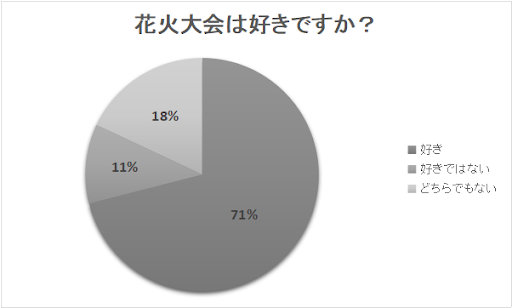 そのため、今回のアンケートのように花火大会が好きという人が多い結果に繋がるのだと思います。