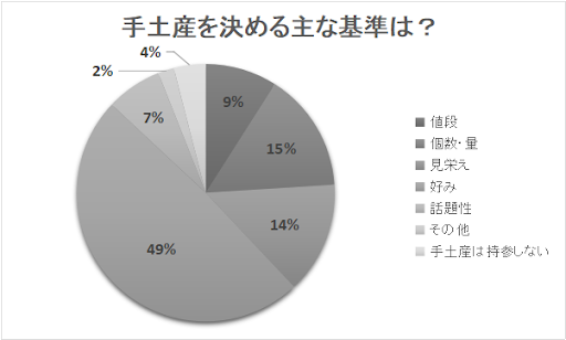 また、「手土産を決める主な基準は?」ということも聞いてみました。すると、約半数の49%の人が「好み」と答えました。