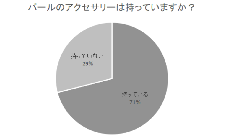 綺和美のトリートメントでは、「パールのアクセサリーは持っていますか?」というアンケートを行いました。すると、「持っている」と答えた人は71%という結果になりました。