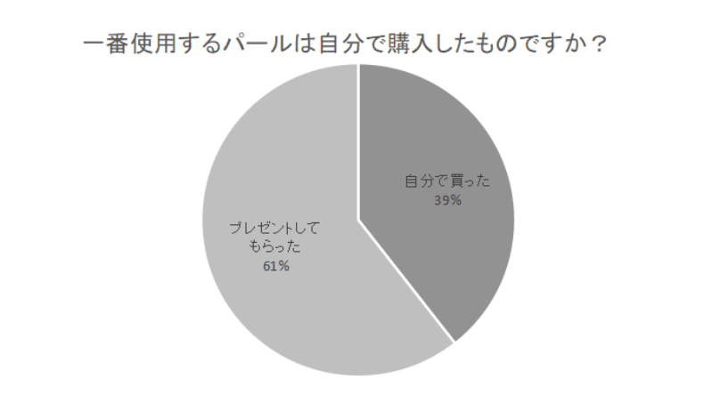 「一番使用するパールは自分で購入したものですか?」というアンケートも行ってみました。すると、「自分で買った」と答えた人は39%にとどまったのです。