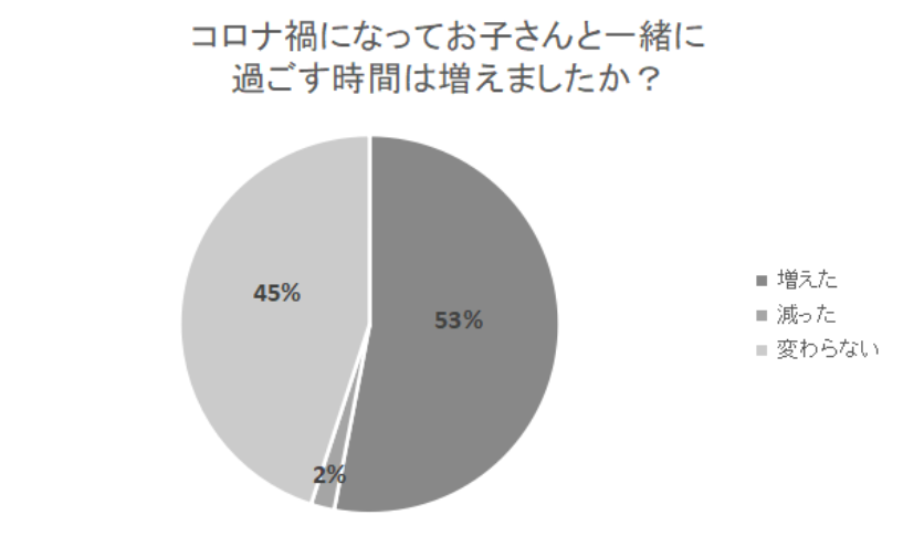 近年のコロナ禍で、両親がリモートワークに変わった家庭も少なくありません。そこで、「コロナ禍になってお子さんと一緒に過ごす時間は増えましたか?」というアンケートも行ってみました。