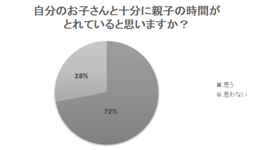 綺和美では、お子さんをお持ちの男女100人に「自分のお子さんと十分に親子の時間がとれていると思いますか?」というアンケートを行いました。すると、72%もの人が「思う」と回答したのです。