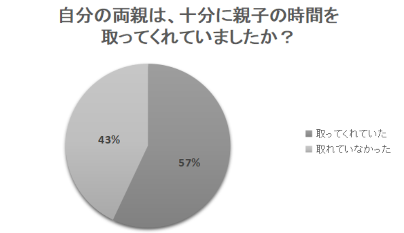 次に、「自分の両親は、自分が子どもの頃十分に親子の時間を取ってくれていましたか?」というアンケートも行ってみました。すると、57%の人が「取ってくれていた」と答えたのです。