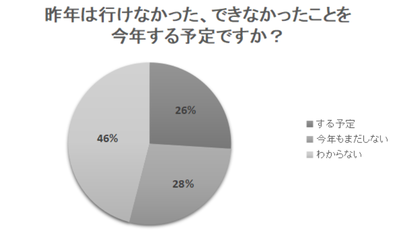 「今年もまだしない」と慎重な答えの人は28%でした。したがって、昨年よりは皆さんの考えが柔軟になっていることがわかります。