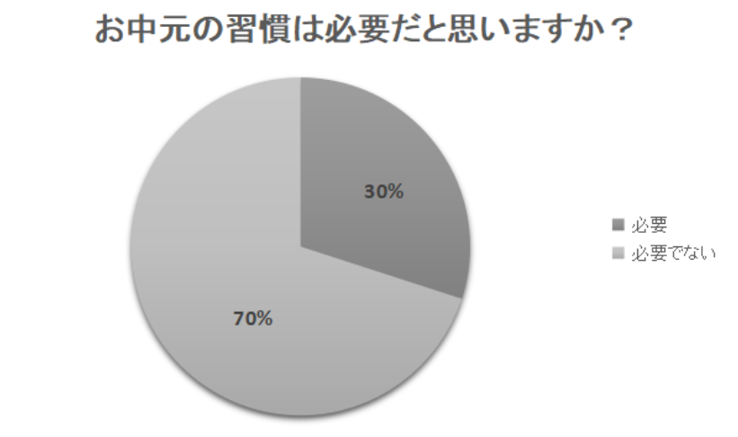 すると、70%もの人が「必要でない」と答えたのです。お中元の習慣は、現代ではあまり受け入れられていないのかもしれません。