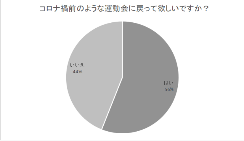 とはいえ、コロナ禍で簡素化された運動会では物足りないという人がいるのも事実です。そこで、「コロナ禍前のような運動会に戻って欲しいですか?」というアンケートも行ってみました。