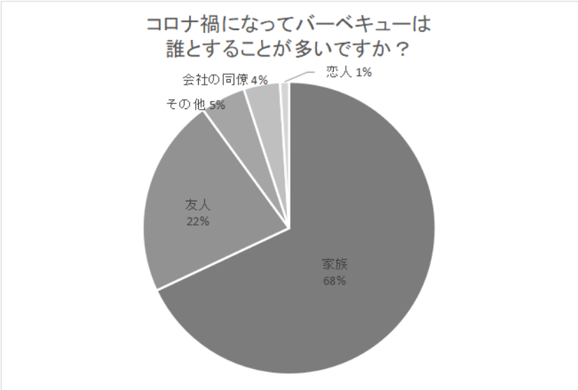 つぎに、「コロナ禍になってバーベキューは誰とすることが多いですか?」というアンケートも行ってみました。すると、68%の人が「家族」と答えたのです。