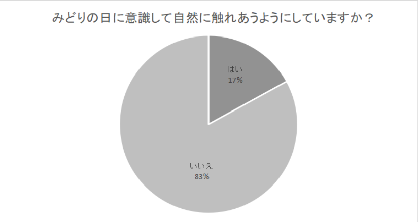 実際に、綺和美で「みどりの日に意識して自然と触れあうようにしていますか?」というアンケートを行ったところ、「はい」と答えたのは17%と少ない結果だったのです。