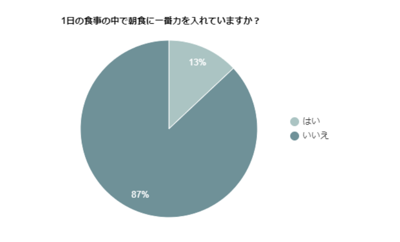 それでは、「1日の食事の中で朝食に一番力を入れている人の割合」はどれくらいなのでしょうか。こちらもアンケートを行ったので、下記の結果をご覧ください。