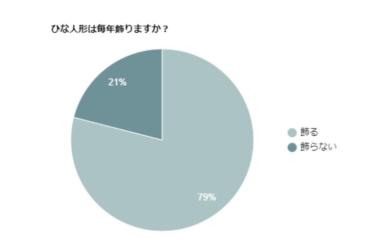 綺和美では、女の子がいるご家庭に対して「ひな人形は毎年飾りますか?」というアンケートを行いました。すると、79%ものご家庭で「飾る」と答えたのです。