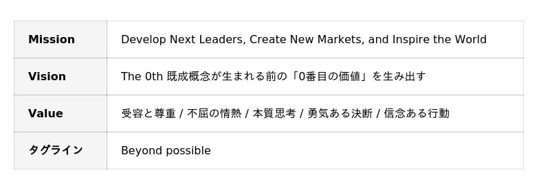 大きなビジョンを持って新たな事業を生み出し、未来を定義する人財の育成・輩出に徹底的に注力し、新しい産業や新しいトレンドの「ムーブメントそのもの」を創造する“The 0th”という存在を目指します。