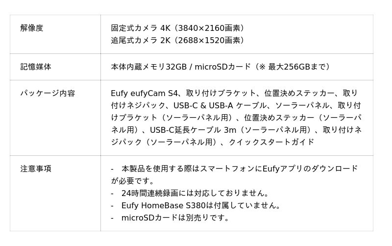 米国・日本・欧州を中心にデジタル関連製品でトップクラスの販売実績を誇るAnkerグループの日本法人、アンカー・ジャパン株式会社(本社:東京都千代田区、代表取締役CEO:猿渡 歩)は、スマートホームブランド「Eufy(ユーフィ)」において、屋外用セキュリティカメラ「Eufy eufyCam S4」をAnker Japan 公式オンラインストア(製品ページ: