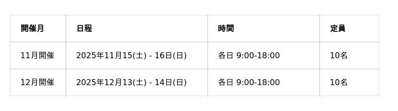 その第一弾として、ChatGPTに代表される生成AIの革命的な活用により、これまで3年を要していたプログラミングの学習期間を、AIの活用によりわずか2日間に短縮する「プログラミング 2daysキャンプ」を2025年11月と12月に開催いたします。
