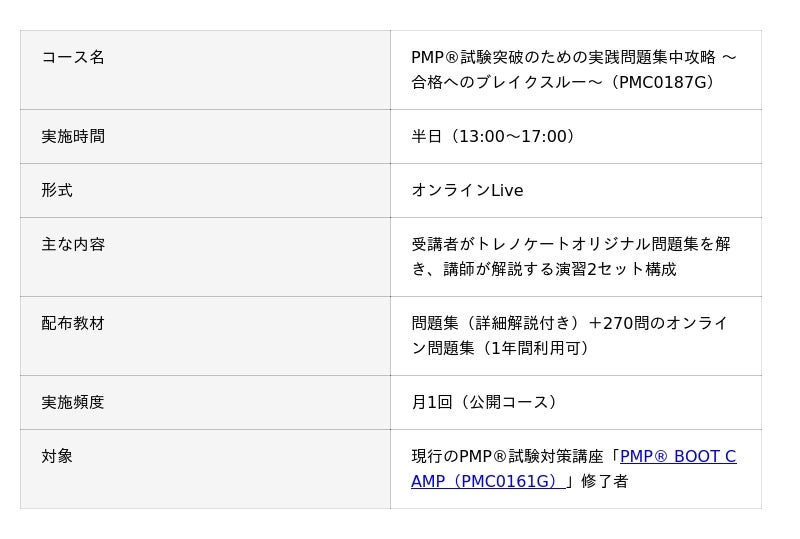 トレノケート、“問題を解く力”を養う新コース「PMP(R)試験突破のための実践問題集中攻略」を提供開始