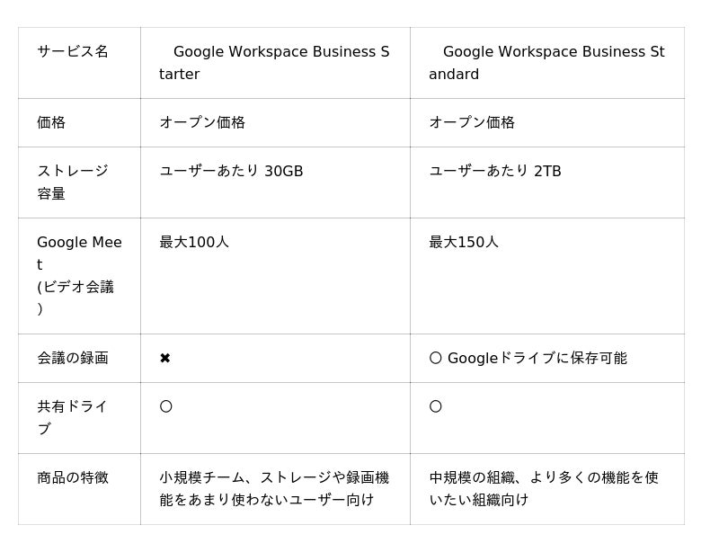 - Google Workspace Business Starter- Google Workspace Business Standard